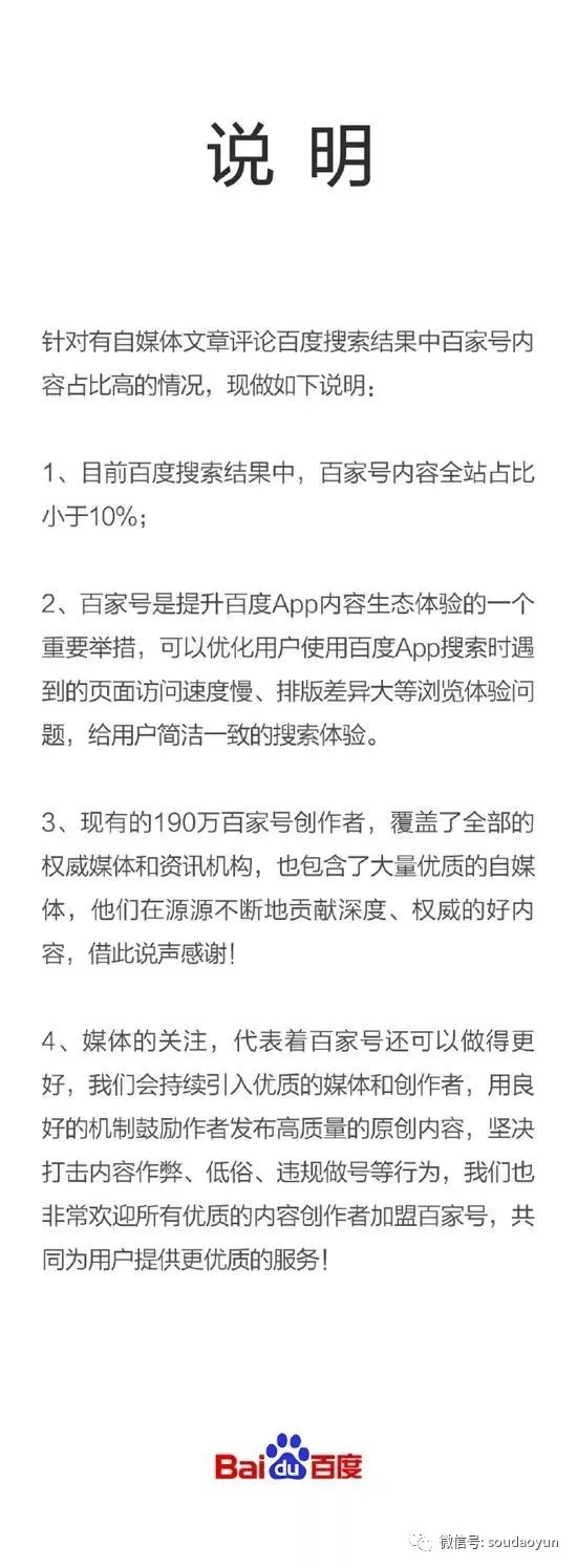 这篇《搜索引擎百度已死》的文能引起百度官方重视,足以证明该文章的影响力不可小觑。因为百度第二天就发出了公告说明。内容如下: